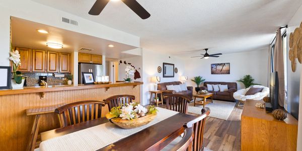 Upon entering your White Sands Village condo, you’ll be greeted by an open concept living area that seamlessly integrates the living, dining, and kitchen spaces. Large sliding glass doors flood the room with natural light, leading to your Private Lanai with Ocean views and lush surroundings. The décor reflects a casual island vibe, with soft hues, natural textures, and local artwork that evoke a sense of relaxation and tranquility. For added convenience, our condo is equipped with air conditioning to keep you cool during warmer days. Complimentary WiFi allows you to stay connected, while an in-unit washer and dryer allow you to pack light and easily refresh your wardrobe throughout your stay. Whether you’re planning a romantic escape, a family vacation, or a getaway with friends, our well-appointed condo provide the ideal blend of comfort, convenience, and island charm.