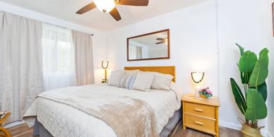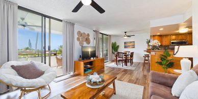 Our recently upgraded and decorated Ocean view 2-bedroom, 2-bathroom condo offers a blend of modern comfort and laid-back island charm, perfect for your Hawaiian getaway. The Master bedroom with en suite comes with a King bed, closet and TV. The Guest bedroom comes with a Queen bed, closet and easy access to the guest bathroom. The spacious living room has a sleep in sofa.